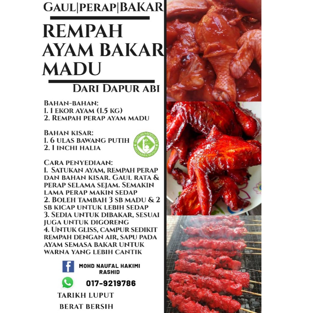 Ada yang nak resepi tak ni? Resepi ayam bakar madu (sabah) mudah 5 bahan anda boleh cuba menghasilkannya sendiri di rumah sangat mudah dan ringkas. Garam dan blackpepper secukup rasa; 8,10ketul ayam 6ulas bawang putih 3inci halia 1 sudu teh serbuk lada hitam 1sudu teh serbuk kari Ayam bakar ini berwarna merah, jangan tertukar dengan ayam .